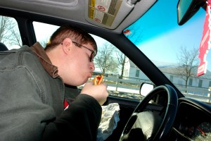 Bingeing while driving is of course dangerous as your attention is not focused on the road. In fact, according to a 2009 study done by the National Highway Traffic Safety Administration showed that 80% of all car accidents and 65% of near misses are caused by distracted drivers– which includes people driving and eating.